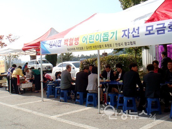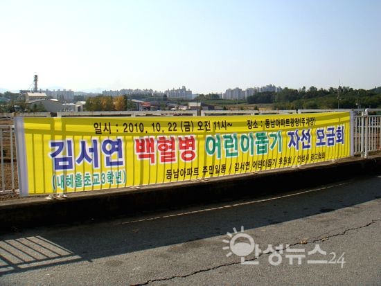 백혈병으로 투병 중인 김서연(내혜홀초 3학년) 어린이를 돕기 위한 자선모금회가 22일 오전 11시 안성시 금석동(통장 문철주)에 위치한 동남아파트 주차장에서 열렸다.