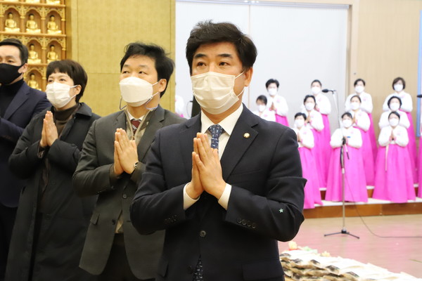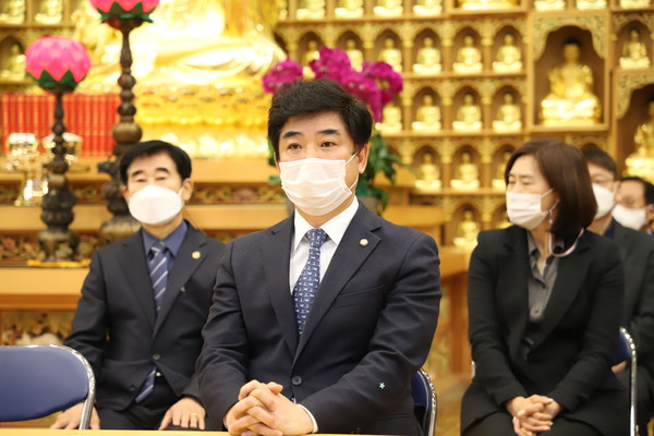 [경인신문=김중택 기자] 김병욱 국회의원(더불어민주당, 분당을)은 28일 성남 분당 대광사 월장 스님의 주지 취임식에 참석했다.