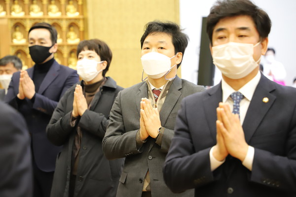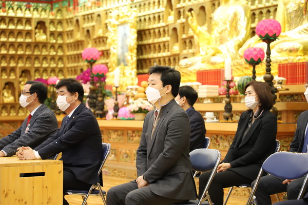 이날 행사는 김병관 위원장을 비롯해 천태종 총무원장 문덕스님, 김병욱ㆍ김은혜 국회의원, 김민수 국민의힘 당협위원장, 임재철 경기도의원, 조정식 성남시의회 부의장, 박광순ㆍ정윤ㆍ서은경ㆍ박영애ㆍ김명수ㆍ이준배ㆍ최미경 시의원 등을 포함해 100여 불자들이 참석했다.