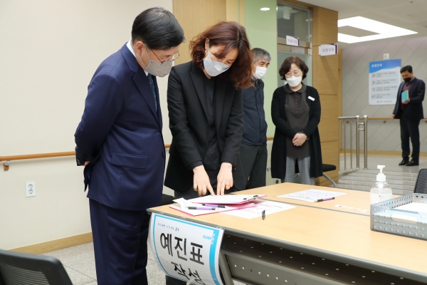 한대희 시장은 백신 접종 동선을 순회하면서 접종상황을 꼼꼼히 점검하고 우선접종자 및 관계자들에게 감사와 격려의 뜻을 전했다.