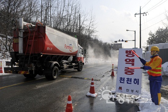 그러나 연일 이어지는 영하의 강추위로 인해 소독약이 얼어 제대로 분사 되지 못할 뿐더러, 일단정지나 서행을 무시하고 달리는 차량들 때문에 별다른 효과를 얻지 못하고 있다.