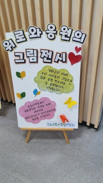 또한, 어린이들이 감사의 마음을 담아 그린 그림 50점을 복도에 전시했다.