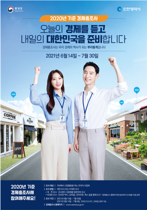2020년 기준‘경제총조사’는 6월 14일부터 15일 기간에는 담당 조사원이 온라인 참여를 희망하는 사업체에 조사안내문을 배부한다.