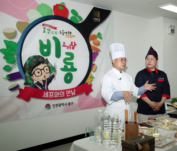 ▲ 홍인성 중구청장, 유튜버‘요리왕 비룡’과 함께 누들플랫폼에서 홍보영상 촬영 [경인신문] 누들플랫폼은 국토교통부 공모사업에 선정된 누들타운 조성사업의 일환으로 중구 신포동에 건립됐다.오는 7월 정식 개관을 앞두고 누들을 테마로 전시, 체험, 교육의 복합기능을 수행한다. 앞으로 원도심의 새로운 일자리 창출 및 침체된 지역경제 활성화를 위한 성장동력으로 자리매김할 것으로 기대된다.