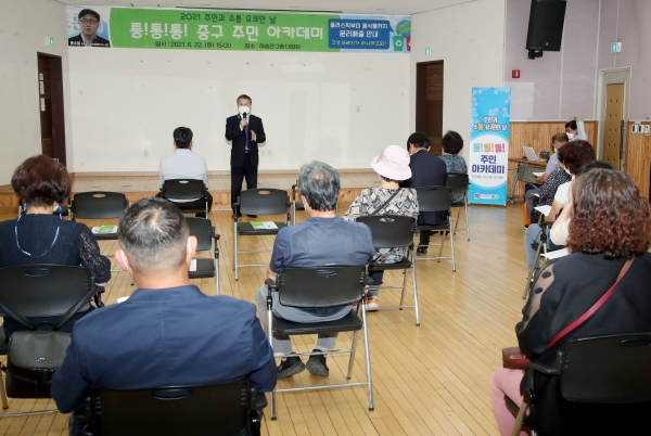 2부‘통통통 중구 주민아카데미’에서는 일명 ‘쓰레기 박사’로 알려져 다양한 TV, 라디오 교양, 시사프로그램 등에서 활동 중인 자원순환사회경제연구소 홍수열 소장님의 ‘플라스틱부터 음식물까지 분리배출 안내 / 그건 쓰레기가 아니라구요’라는 생활밀착형 주제의 강의로 많은 호응을 얻었다.