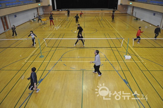 매일 저녁 7시 30분이 되면 안성시종합운동장 실내체육관 안은 배드민턴을 치는 회원들의 열기로 가득차서 후끈하다. 일을 마치고, 학교를 마치고 편한 복장으로 나온 회원들은 안부를 전하기가 무섭게 6개의 코트에 수준별로 나눠져 배드민턴을 쥐고 셔틀콕을 치기 바빴다.