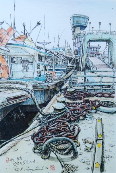 이번 작품들의 특징은 수채화와 어반 스케치와 같은 뜻)라는 장르를 통합한 작품을 선보이며 점·선·면을 통해 작품을 구상하면서 동시에 작품 속 항구의 배는 항구 도시 인천을 실감 나게 보여주고 있다.