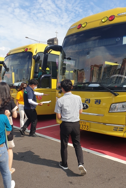 점검 대상은 일반 학원과 특수학교 등 5곳에서 운영 중인 통학버스 6대로 코로나19 확산 방지를 위해 최소화했다.