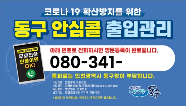 허인환 동구청장은 “안심콜 서비스를 통해 효율적 방역관리와 역학조사는 물론 수기작성과 QR코드 사용에 따른 방문객의 불편을 해소할 수 있을 것으로 기대된다”며 “코로나19의 어려운 상황 속에서 하루빨리 일상으로 돌아갈 수 있도록 방역관리에 최선을 다 하겠다”고 말했다.