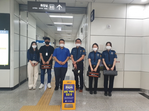 이날 서구 관계 공무원과 서부경찰서 직원, 인천2호선 역사 관계자 등 10여명이 서구청역-가재울역 구간 공중화장실을 대상으로 불법촬영카메라에 대한 꼼꼼한 점검에 나섰다.
