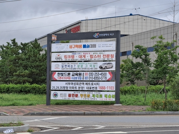 서구 관계자는 “기존 게시대가 태풍이나 호우 등으로 현수막이 늘어지거나 떨어지는 등 안전에 위협이 될 뿐만 아니라 주변 경관과 어울리지 않는다는 지적이 있었다”며 “이에 따라 지난해부터 순차적으로 게시대를 교체해왔다”고 설명했다.