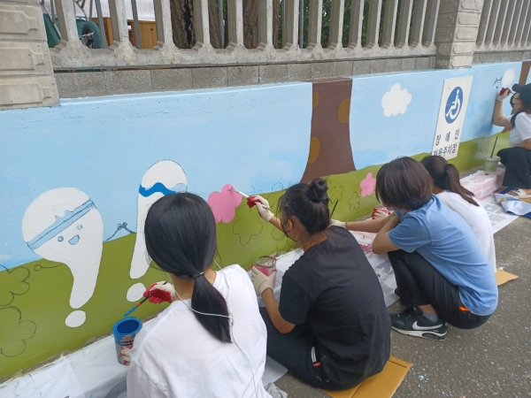 벽화에는 계양구를 상징하는 계양산, 아라뱃길과 청소년 운영위원회 대표 마스코트인 ‘물음이, 느낌이’를 배치했다.