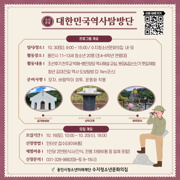 수지청소년문화의집, 용인시 초4~6 대상 역사 도보탐방 희망자 10월 16일부터 접수