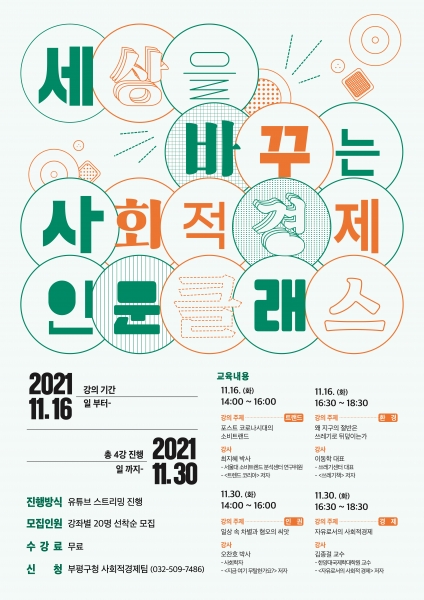 수강을 원하는 구민은 부평구 사회적경제팀에 전화로 수강 신청할 수 있다.