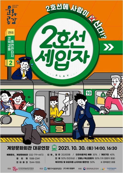 한편 계양문화회관은 문화체육관광부, 한국문화예술회관위원회, 한국문화예술회관연합회가 후원 주최하는 국비지원사업인‘2021 문예회관과 함께하는 방방곡곡 문화공감’공모 사업에 선정됨에 따라 지역에 수준 높은 문화예술 공연을 유치해 지역민에게 다양한 문화 작품을 관람할 수 있는 기회를 제공하고 있다.
