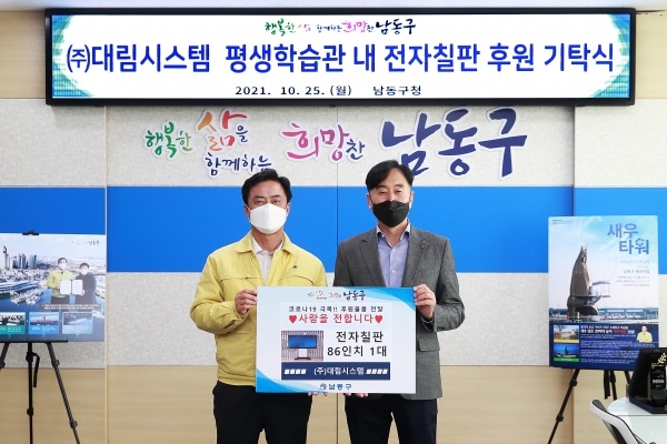 이강호 구청장은 “코로나19 확산에 따른 경기침체에도 불구하고 남동구민 평생학습 실현을 위한 전자칠판 기탁에 감사드린다”며 “구민들이 언제 어디서나 교육받을 수 있는 기회와 여건을 조성하는데 최선을 다하겠다”고 전했다.