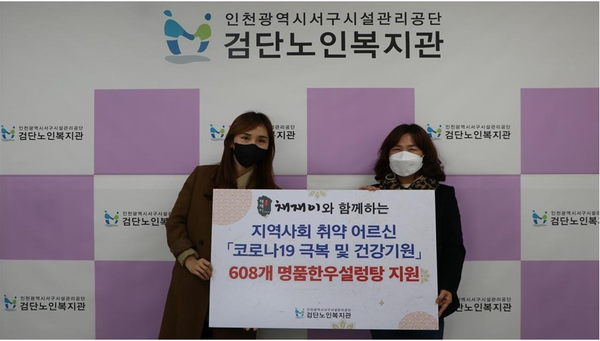 [ 경인신문= 이광일 기자] 인천 서구 시설관리공단(이사장 구재용) 검단노인복지관(관장 변정임)은 지난 25일 채재이 설렁탕(대표 채재이)으로부터 노인맞춤돌봄 어르신의 코로나19 극복과 결식해소를 위한 <정(情)담은 설렁탕 나눔 행사>를 진행했다고 밝혔다.
