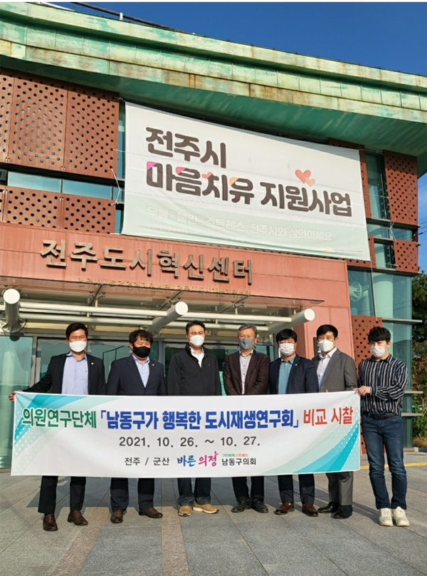 [ 경인신문= 이광일 기자] 남동구의회 의원연구단체인 ‘남동구가 행복한 도시재생 연구회’ 소속 의원들(황규진, 정재호, 조성민, 이용우, 유광희 의원)은 지난 26~27일 1박2일의 일정으로 도시재생 선진지 비교시찰를 실시했다고 밝혔다.