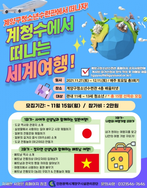 ‘계청수에서 떠나는 세계여행’은 코로나19로 인해 외부활동과 문화체험의 기회가 적어진 청소년들을 위해 청소년수련관에서 마련한 문화체험 프로그램이다.