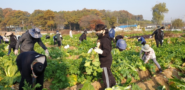G패밀리봉사단은 함께 땀 흘리며 경작한 배추 350포기와 무 750개를 수확해 계양구 푸드마켓과 계양 푸른빛 재가 노인지원 서비스센터에 전달했다.