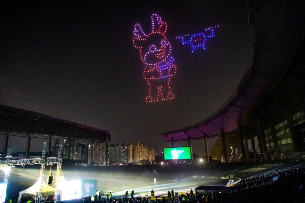 특히 첨단 드론 300대가 캄캄한 가을 밤하늘을 빛으로 가득 채우며 펼쳐진 ‘군집 비행 라이트 쇼’는 관중들의 시선을 완전히 사로잡았다.