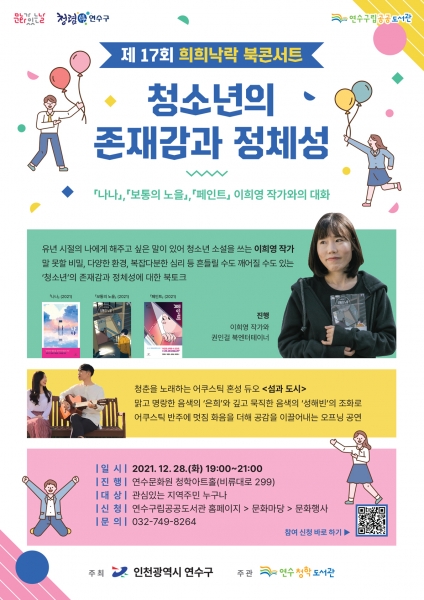 한편 연수구립공공도서관 희희낙락 북콘서트는 2018년부터 진행해 제17회째를 맞이하고 있고 지역 내 곳곳으로 찾아가는 문화공연, 저자와의 만남을 진행하고 있다.