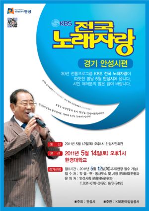 시 관계자는 “이번 노래자랑은 안성에서 오랜만에 개최되어 시민들의 많은 참여가 예상된다”며, “시민들이 한마음 한뜻으로 하나되는 뜻 깊은 자리가 될 수 있도록 준비에 만전을 기하겠다“고 말하며 많은 관심과 참여를 당부했다.