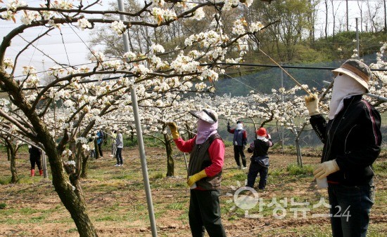 농업기술센터 심준기 농업개발연구팀장은 “개화기전․후 병해충방제 및 서리피해예방과 더불어 적기 인공수분으로 결실안정과 정형과를 생산할 수 있는 매우 중요한 시기이므로 농업기상자료를 기초하여 철저한 인공수분 등 농작업을 당부” 했다.