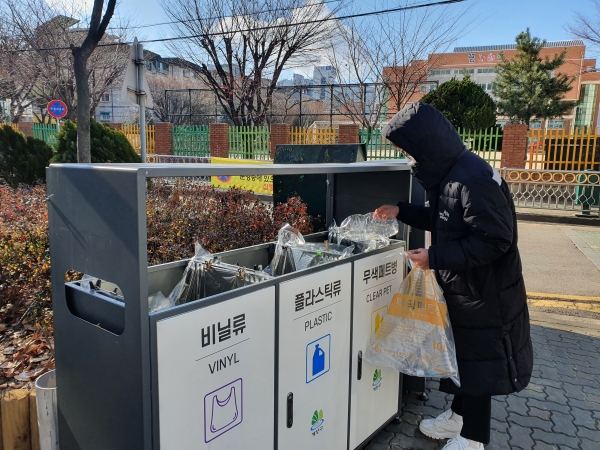 재활용품 배출일은 토요일을 제외한 주 6일이며 특히 목요일은 무색페트병을 별도 분리배출하는 날로 정하고 있다.
