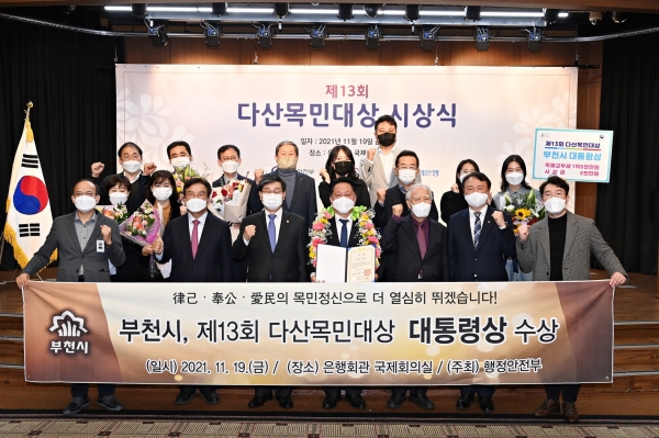 다산목민대상은 시민을 위한 창의적 시책을 추진한 지자체에 수여하는 가장 권위 있는 상으로 부천시의 대통령상 수상은 더욱 의미가 크다.