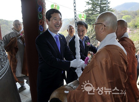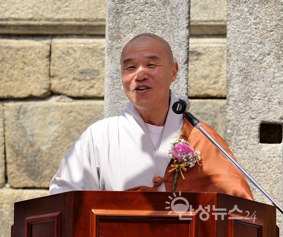지강스님은 법문을 통해 “지난해 제작상의 문제로 범종을 타종하지 못했지만, 이를 다시 불사해 오늘 범종을 타종하는 새로운 날을 맞아, 희망의 범종 불사가 되었다”며 “그동안 구제역과 조류독감, 최근엔 일본 대지진 등 한국은 물론 세계가 혼란함을 겪고있다. 이럴 때일수록 힘을 모아야 한다”고 밝혔다.