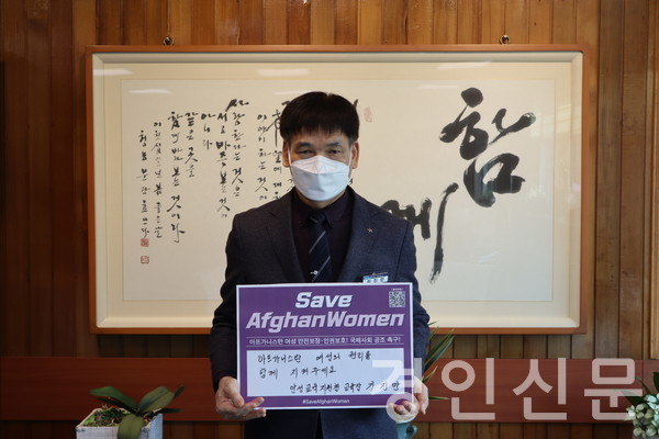 [경인신문 = 강숙희 기자] 안성교육지원청 김진만 교육장은 14일 아프가니스탄 여성 인권 보호와 안전보장을 촉구하는‘세이브 아프간 위민(SaveAfghan Women)’챌린지에 동참했다.