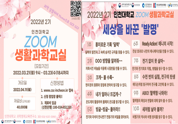 문의 : 인천대학교 생활과학교실 (032-835-4980)