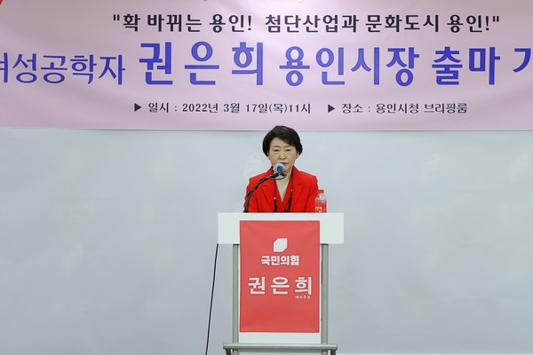 [경인신문=김신근 기자] 권은희 전 국회의원이 용인특례시장 출마를 위해 예비후보 등록을 마치고 17일 용인시청 브리핑룸에서 출마 기자회견을 가졌다.