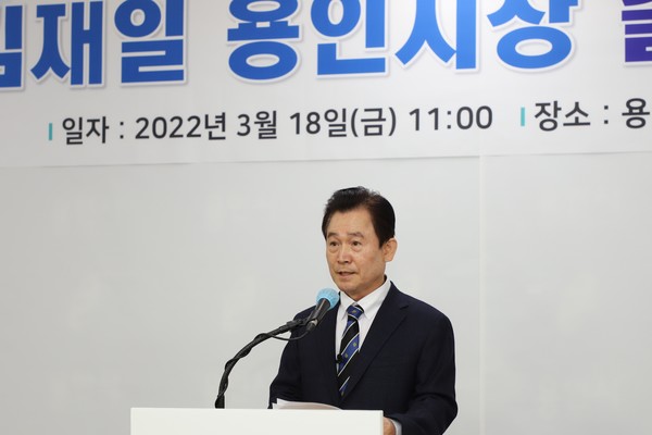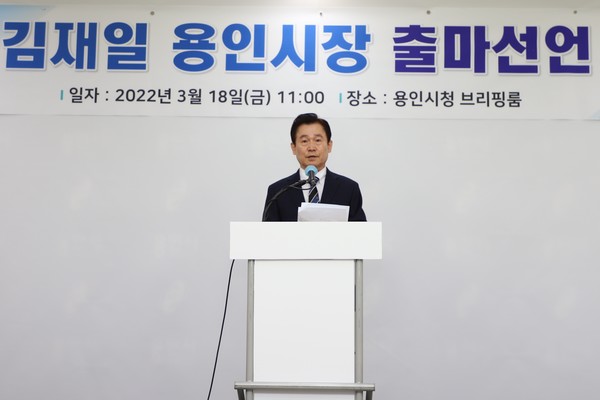 [경인신문=김신근 기자] 김재일 전 용인시 부시장은 18일 용인시청 브리핑룸에서 용인특례시장 출마선언 기자회견을 가졌다.
