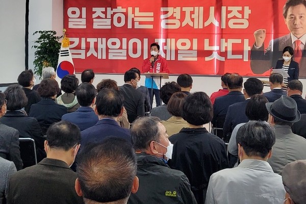 김재일 용인시장 후보는 인사말에서 "현 집권세력에 철저히 실망했다. 정치, 경제, 사회 모든 분야에서 엉망진창이 되어 다시 정치 전면에 나설 결심을 했다. 용인은 무한한 가능성이 있는 경기도의 중심도시이다. 그러나 편협하고, 근시안적인 아날로그 리더십 때문에 용인의 역동성이 짖눌리고 있다. 충북 제천시는 인구 14만 인데도 국제 행사가 2개나 된다. 용인시는 특례시임에도 국제행사가 1개도 없다. 비전과 창의적 리더십이 없는 시장의 무능력 때문이다. 나는 감히 용인시를 품격있는 도시로 만드는 일 잘하는 경제시장이 되겠다. 6월 1일 선거에서 저 김재일후보가 용인시장에 당선될 수 있도록 많은 응원과 지지 부탁드린다"라고 말했다.