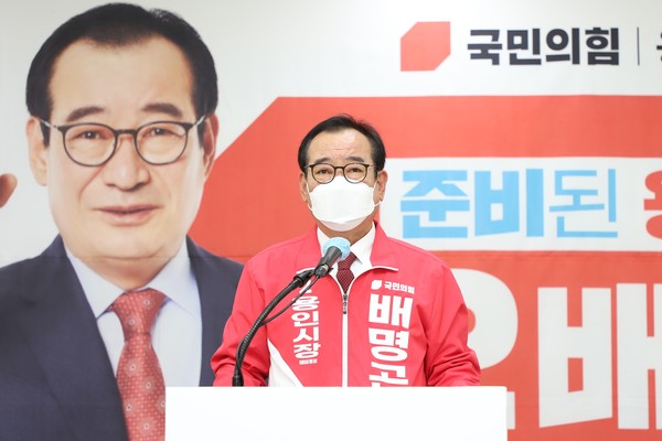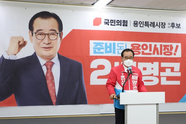 특히 배명곤 후보는 “지난 4년간 산재된 시의 현안은 뒤로 한 채 살기 좋은 용인시를 난개발됐다고 홍보하며 오직 난개발 방지만을 외치는 현 시장의 실정을 강하게 비판하고, 용인시가 앞으로 발전적 변화가 필요하다는 생각으로 출마를 결정했다”고 했다.