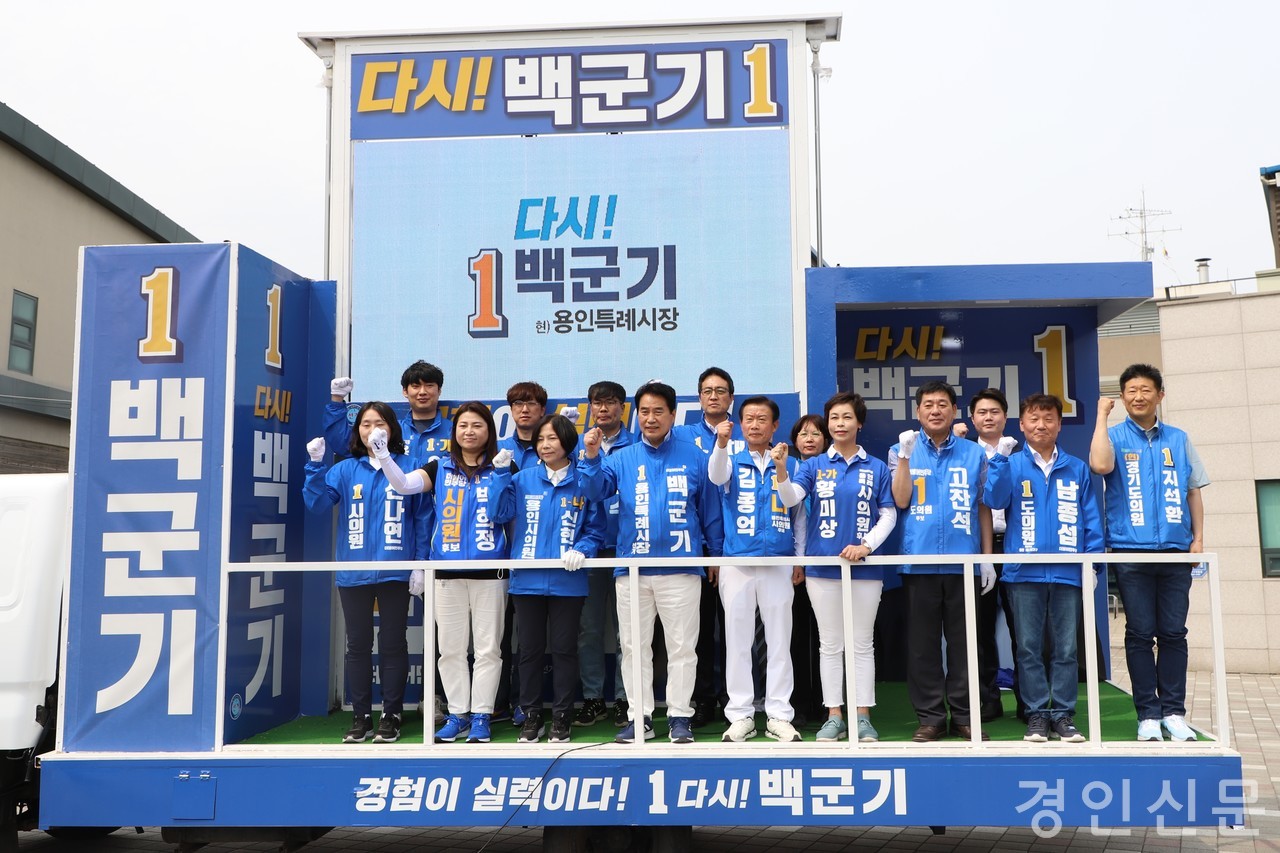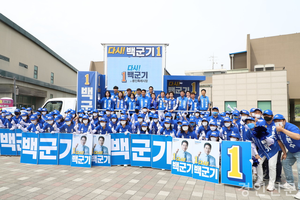 백군기 후보는 원팀선대위 출정식에서 출정사를 통해 “용인이 무너지면 경기도가 무너진다. 전국의 지방선거 전선이 무너진다”며 비장한 각오를 드러냈다.