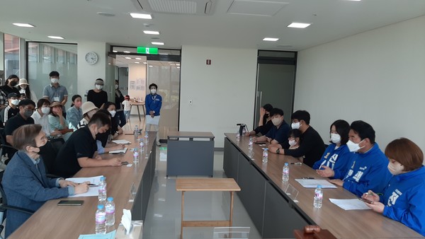 [경인신문=김신근 기자] 더불어민주당 백군기 용인특례시장 후보는 21일 성기선 경기도교육감 후보 · 전자영 경기도의원 후보·신나영 시의원 후보와 함께 ‘기흥역세권 중학교 설립을 위한 주민 간담회’에 참석했다.