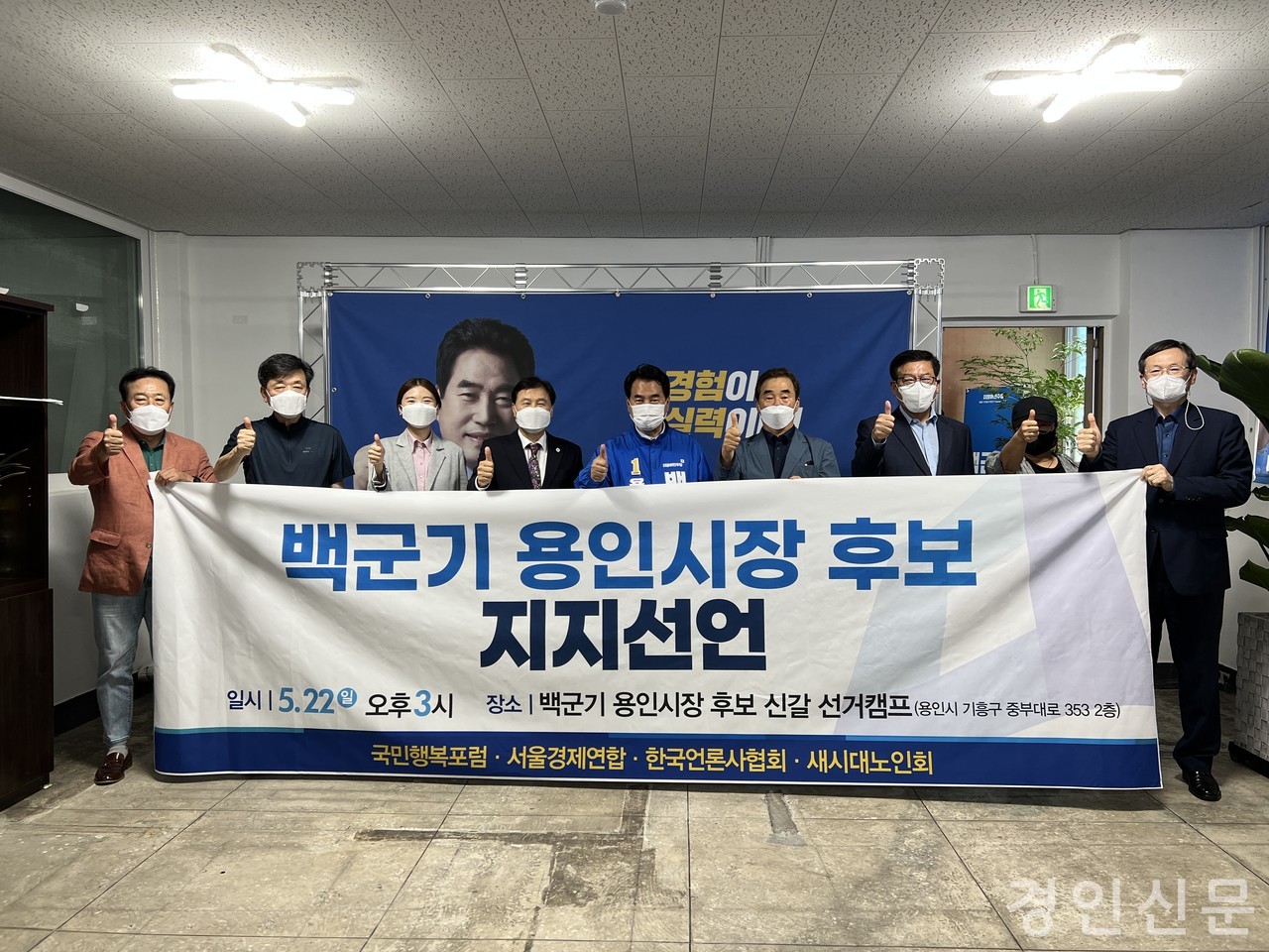 [경인신문=김신근 기자] 대한민국 국민행복포럼(회장 박종선)은 22일 기흥구 신갈오거리 더불어민주당 백군기 후보 선거사무소에서 백군기 후보 지지를 선언했다.