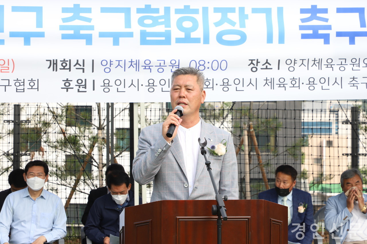 이윤호 처인구축구협회장은 기념사를 통해 “두 분의 시장 후보님이 양지에 복합스포트센터 건립을 약속했고, 용인에 프로축구 구단 창단을 약속하셨다. 이 모든 것이 처인구 축구인들의 힘이고 나아가서 용인시 축구 발전에 공을 세울 것”이라고 말했다.