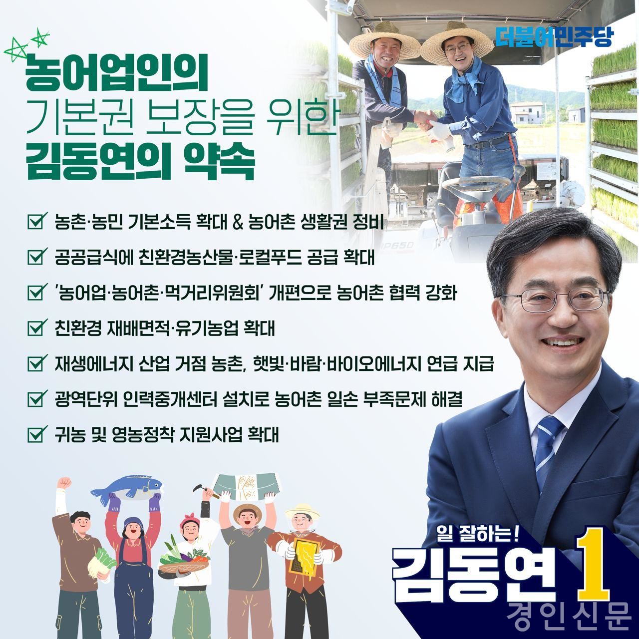 [경인신문=김신근 기자] 김동연 더불어민주당 경기도지사 후보가 ‘농어업 4대 정책 공약’을 발표했다. 일손 부족 등 농어촌 현안 문제 해결부터 그린탄소 농업, 식량안보 등 농어촌의 나아갈 방향을 4대 주요 공약으로 밝힌 것이다.