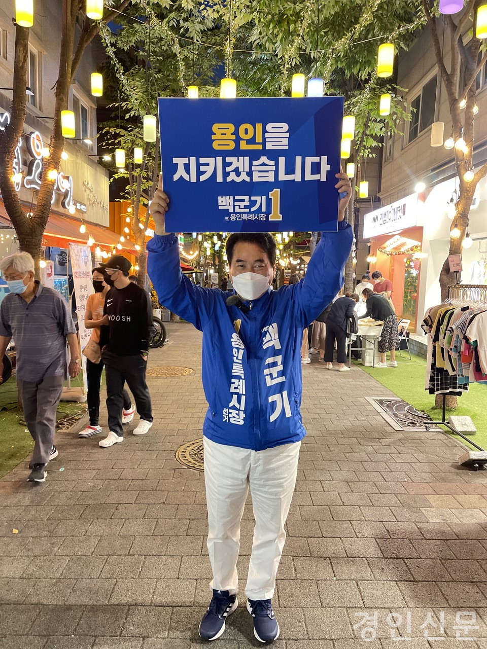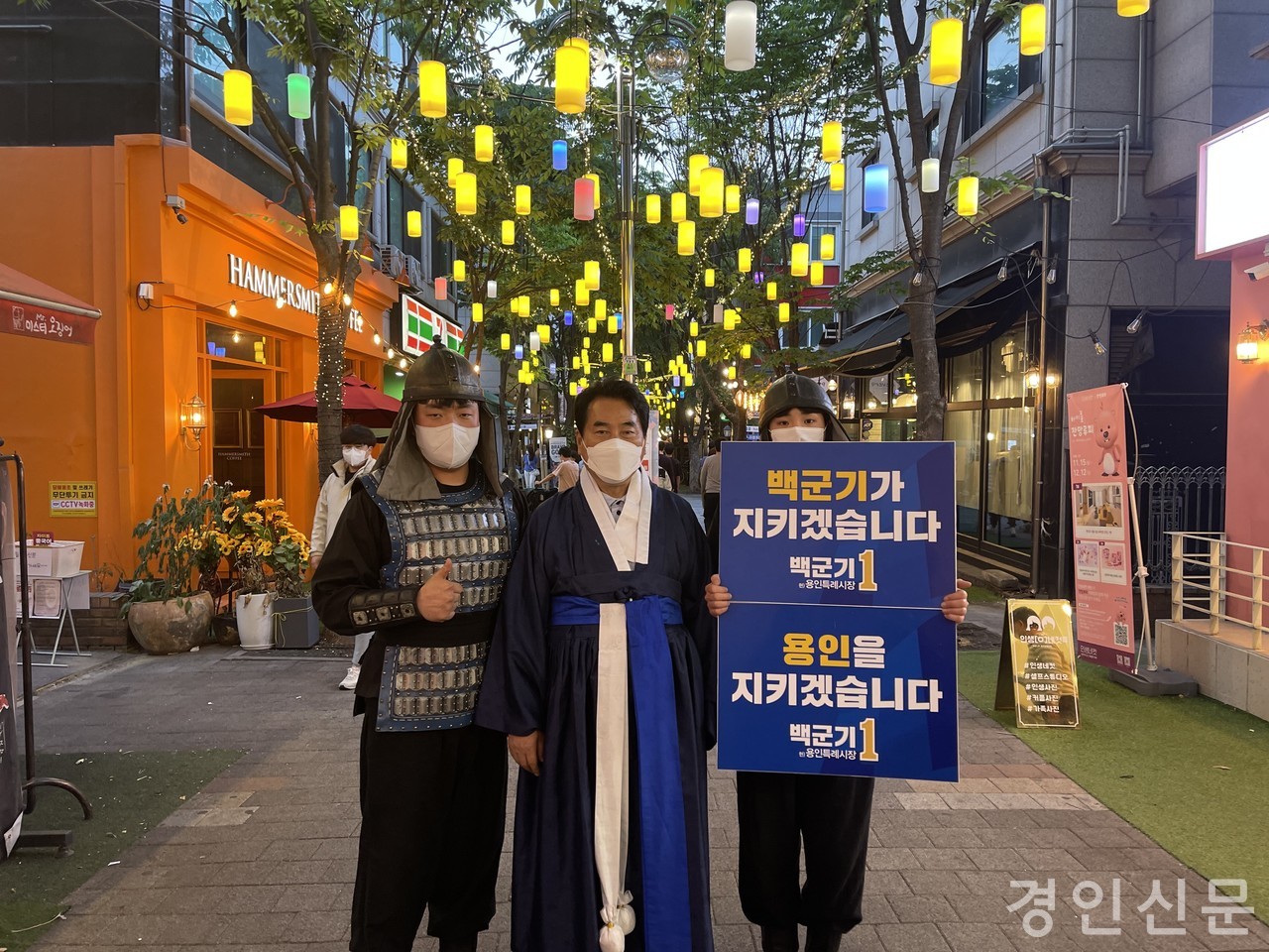 [경인신문=김신근 기자] 더불어민주당 백군기 용인특례시장 후보는 어제(21일) ‘용인 수호 무사’와 함께 보정동 카페거리에서 시민들을 만나며 지지를 호소했다.