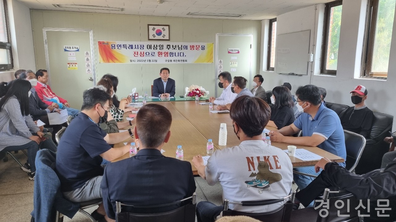 이상일 국민의힘 용인특례시장 후보는 22일 기흥구 구갈동 한성아파트 상가에서 인근 13개 아파트 대표를 만나 이같이 밝혔다.