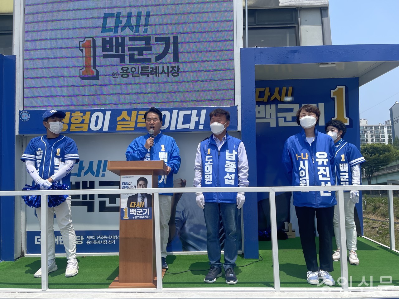 백 후보는 남종섭 경기도의원 후보, 유진선 시의원 후보와 함께한 유세에서 “SK하이닉스 반도체클러스터와 플랫폼시티 유치를 통해 재정자립도시의 기틀을 다졌다”며, “용인의 백년먹거리인 두 사업의 성공을 위해서는 이미 일을 해본 재선시장이 반드시 필요하다”고 호소했다.
