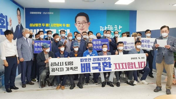 같은 날 저녁에는 성남시 출신 퇴임 공직자 가족 71인 대표가 캠프를 찾아 배국환 후보 지지를 선언했다. 성남시청을 비롯한 여러 기관에서 공직자로 근무했던 이들은 “배국환 후보야말로 성남시의 많은 문제를 해결할 경제, 행정 전문가”라며 “청년이 취업하기 좋고, 결혼하기 좋은 도시를 만들고 최고의 문화․복지 도시로 도약해야 할 성남시의 미래를 위해 배 후보를 지지한다”고 지지의 이유를 밝혔다.