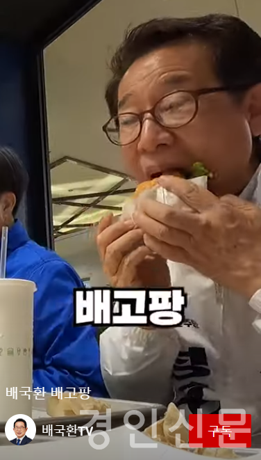 이 외에도 ‘카메라 따라가기’ 영상과 고등학교 3학년 청소년들과 함께 햄버거를 먹으며 이야기하는 ‘배국환 배고팡’영상도 꾸준히 관심을 받고 있다. 중독성 있는 배국환 후보의 선거송과 햄버거 먹방을 속도감 있게 편집한 ‘배국환 배고팡’영상은 보다 보면 자연스럽게 후보자의 이름을 따라 부르게 되는 마성의 영상으로, 유세현장에서도 인기를 끌고 있다.