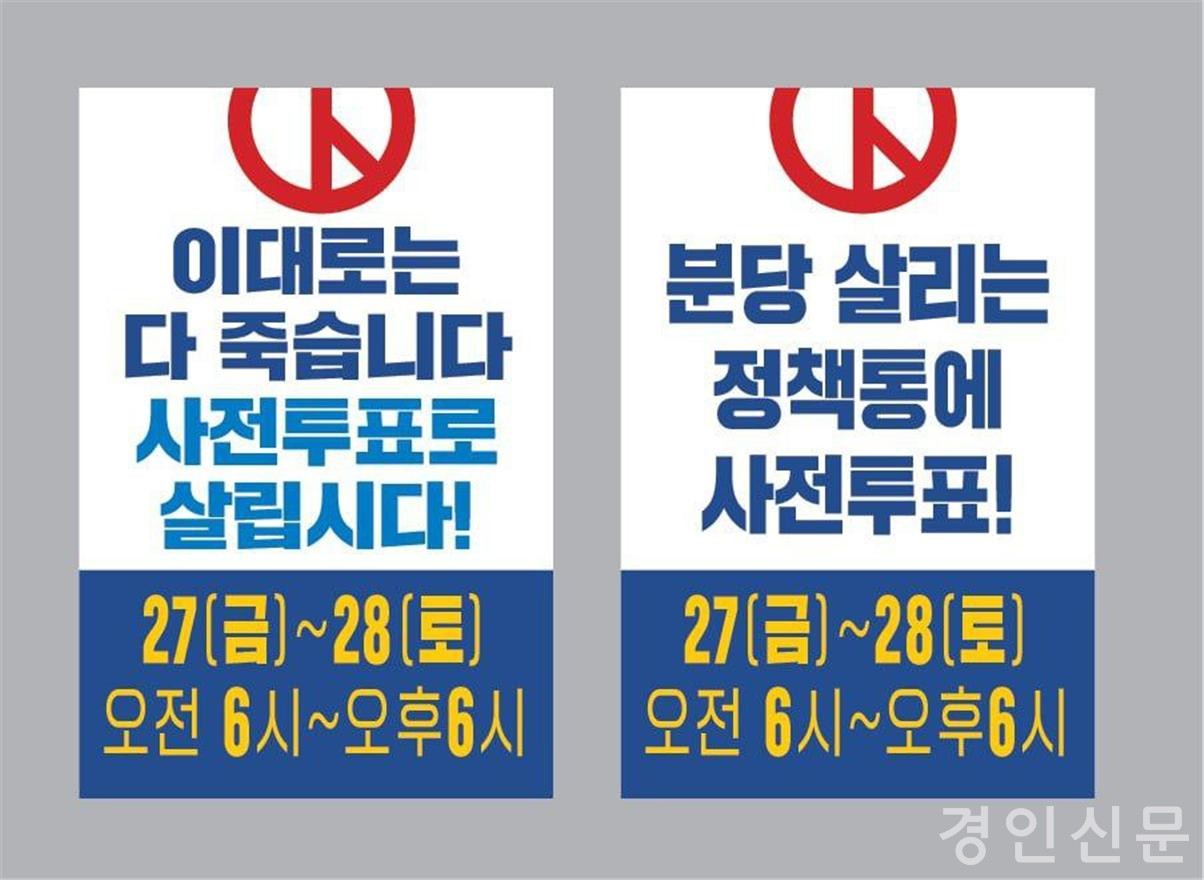 배국환 후보 전 운동원이 준비된 피켓을 들고 사전투표 독려에 나서며 SNS 홍보, 전화홍보 등을 통해 적극적으로 홍보해나갈 예정이다.