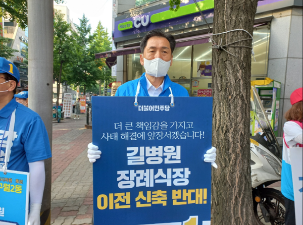이 후보는 “주민들의 고통을 야기할 수 있는 문제는 반드시 주민 여러분의 의견을 먼저 듣고 결정되어야 한다”고 말하며 주택가 바로 앞에 세워지는 장례식장 건립은 주민들의 충분한 동의가 생략되었기 때문에 절차에 문제가 있다고 지적했다.