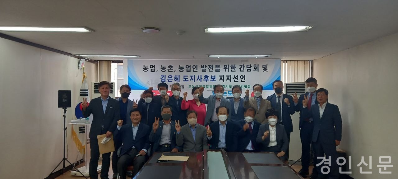[경인신문=김신근 기자] 경기도 농업인협회 등 도내 농업인 단체들이 오늘(25일) 간담회를 열고 김은혜 국민의힘 경기도지사 후보를 공개 지지했다.
